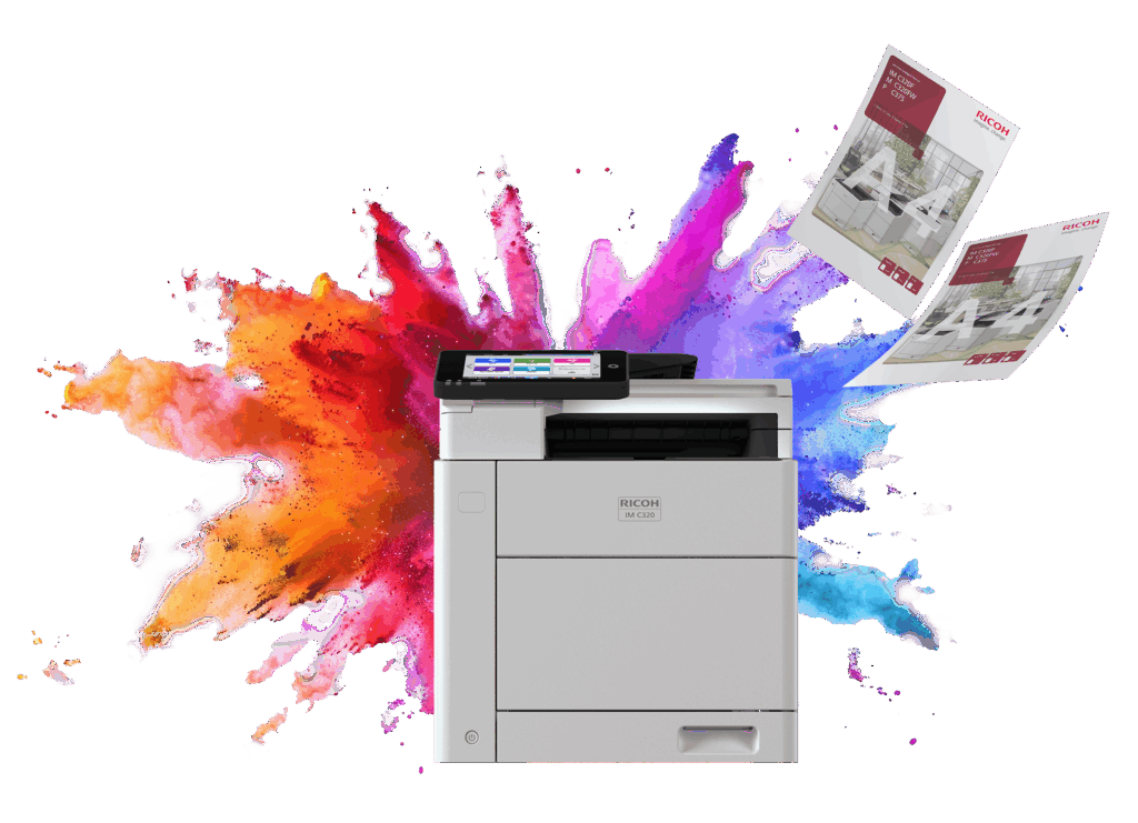 Den kompakte Ricoh IM C320 A4 multifunktionsprinter klarer alle de daglige print-, scan- og kopi-opgaver til det mindre kontor.